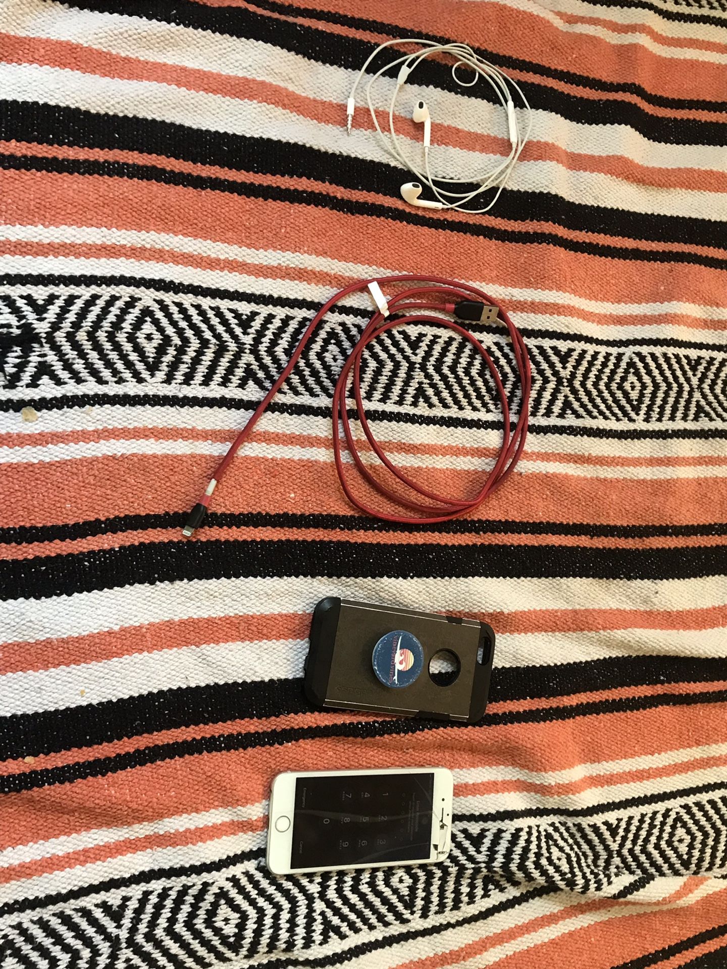 iPhone 6s in fair condition with charging cord, earbuds, case, and popsocket for only $100!