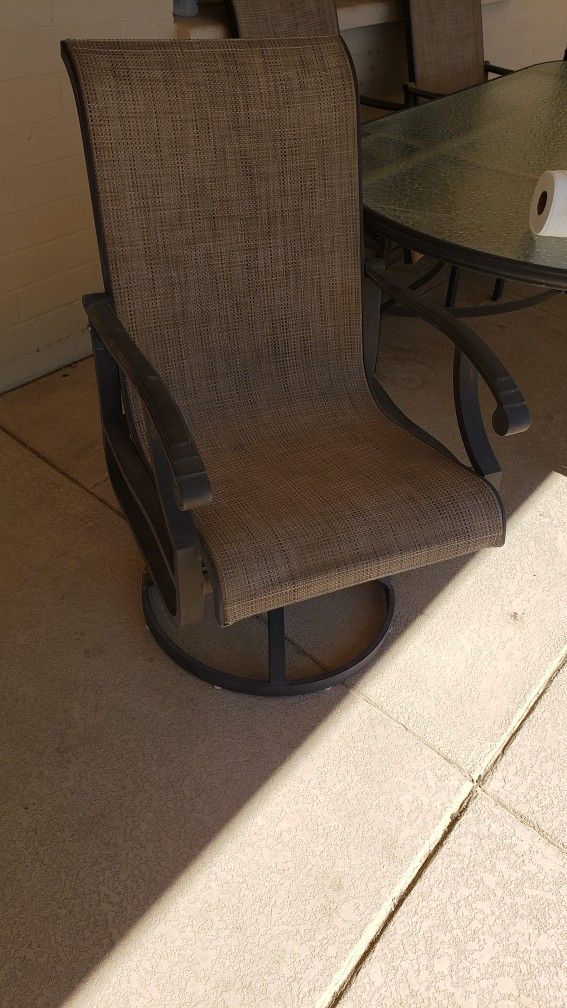 Patio Table 85"L×43"W×28"H. 2 Rocker Swivels chairs,4 regular chairs all good condition, Umbrella and base. Asking $400.00 cash