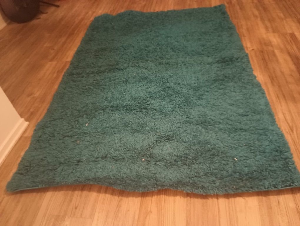 Beautiful 3' x 6' area rug from Unique Loom in a vibrant teal/turquoise color. This rug features a soft, plush texture that feels great underfoot and adds a nice pop of color to any room. Size: Approx. 3 feet x 6 feet (37" x 73") I can get exact dimensions if you need them. Material: 100% Polypropylene (durable and stain-resistant) Condition: Pre-owned but well-cared for. From a smoke-free home. We would only have it in our livingroom from the beginning of spring to the beginning of fall for the last few years. We remove it for fall and Christmas decorations and use it again next spring... Because of that, it's still looking really nice.