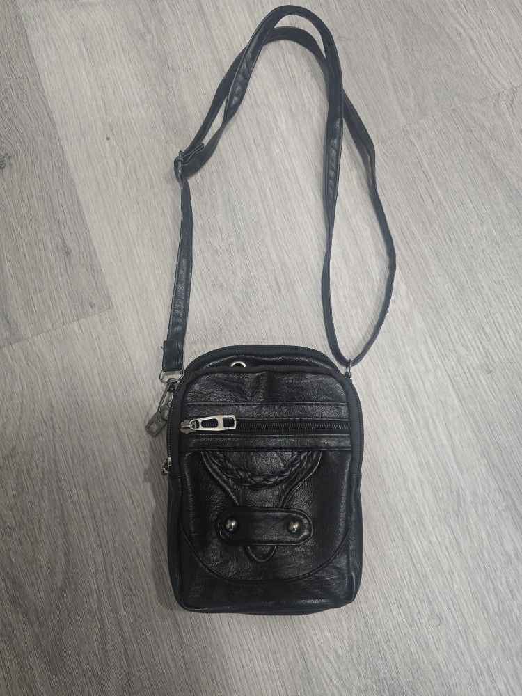 NEW BLACK SHOULDER CROSSBODY PURSE 3 ZIPPER POCKETS 5" X 7"
