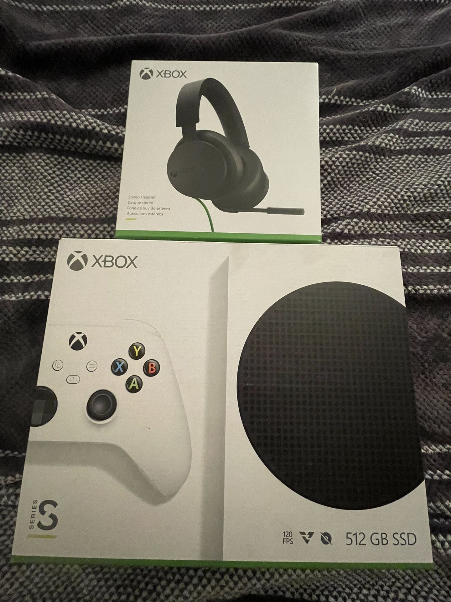Brand new Xbox with headphones. Both have never been used still in the box.
