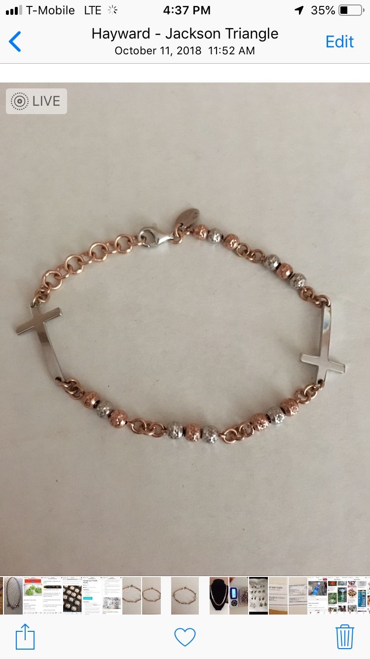 7” ITALIAN STERLING SILVER CROSS BRACELET WITH SILVER & ROSE BEADS