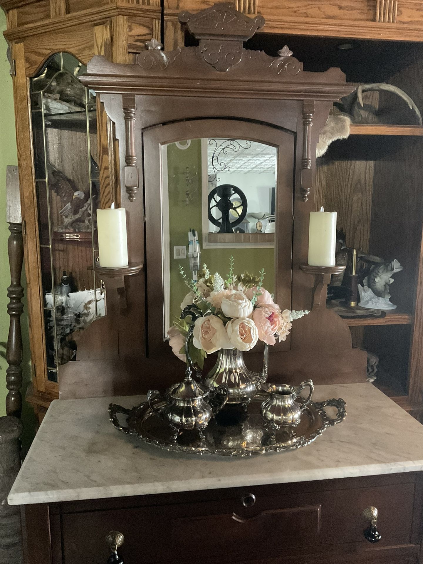 NOT PURE SILVER Heavy set weighs about 13 pounds. Tray is 26 wide. Gorgeous set and price is firm