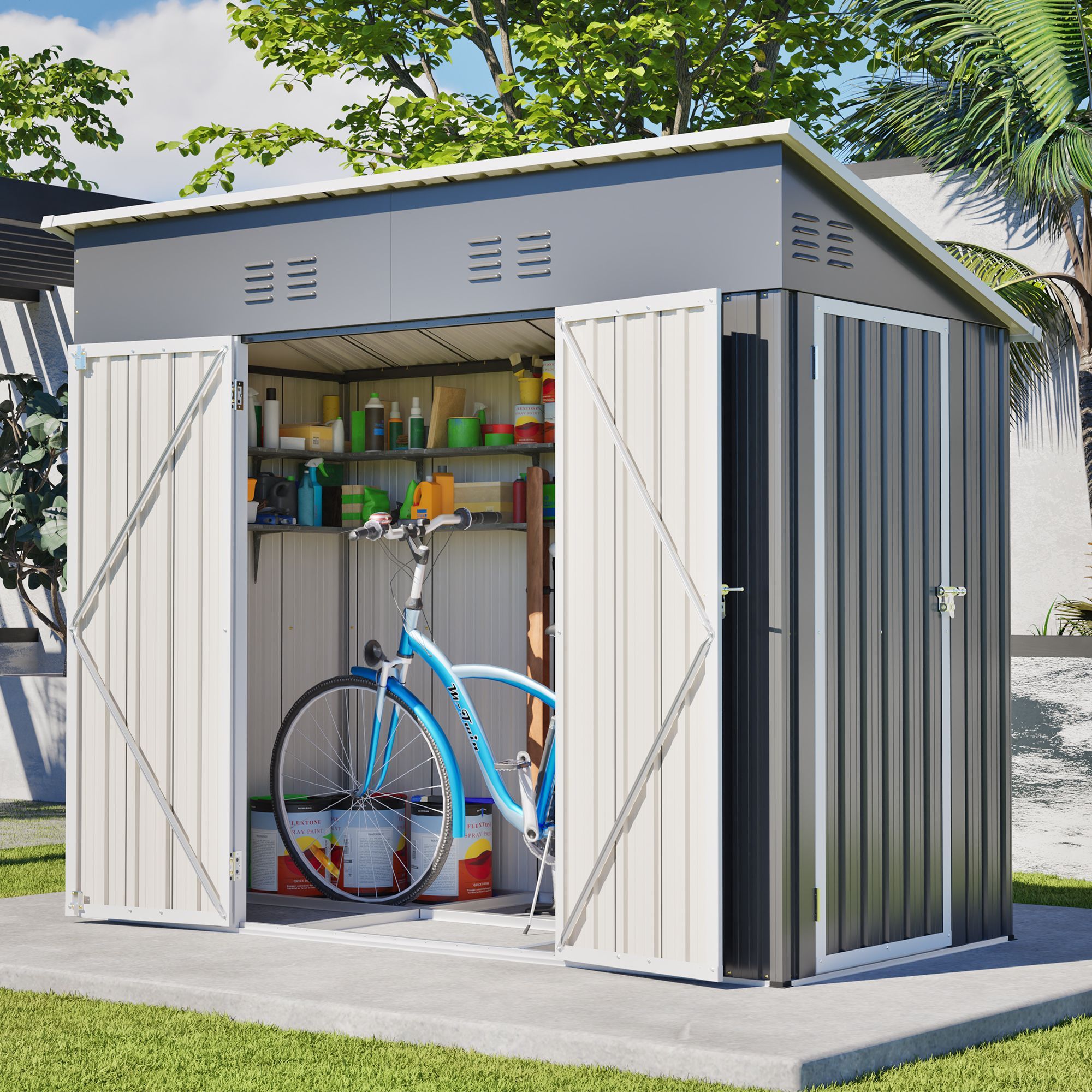 4x8 Slope-Roof Reinforced Storage Shed with Weatherproof Sloping Roof & 4 Air Vents, Heavy-Duty Sturdy Metal Frame, Left/Right Optional Door, Outdoor