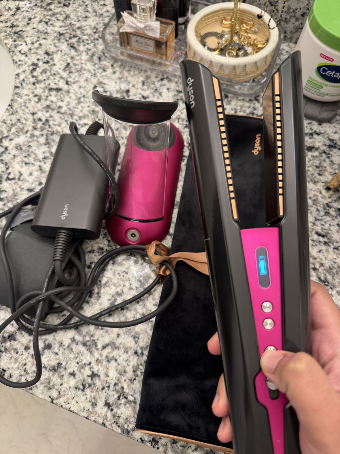 Dyson Hair Straightener with charging dock and case. New - Never Used.