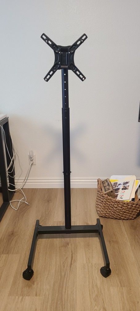 Rolling universal TV / monitor stand. Fits 13-50 inch screens. 30° tilt Adjustable height TV stand holds 44lbs Black alloy steel $30 cash or Venmo