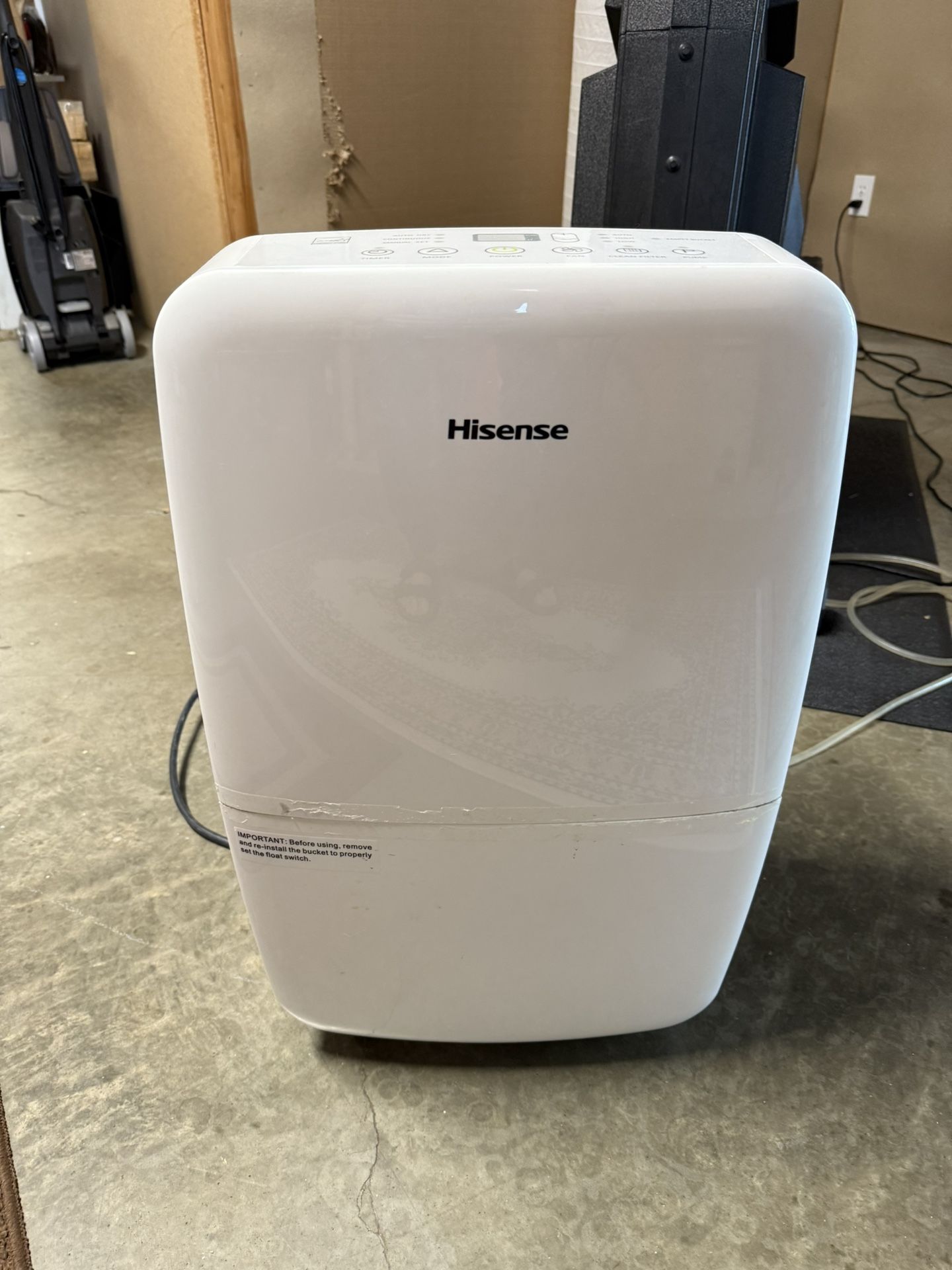Hisense dehumidifier. Has reservoir or will pump out to a drain. Multiple settings for comfort. Moving to a dry climate and downsizing. Gig Harbor area