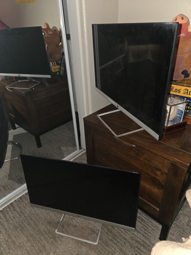 Two sleek 25 inch full HD monitors with vibrant IPS color, ultra thin design, and fast 5ms response. Perfect for work, streaming and everyday use. Excellent clarity in a modern, lightweight build. Still like new. Comes in pair as final purchase. Power cables and HDMI cables included.