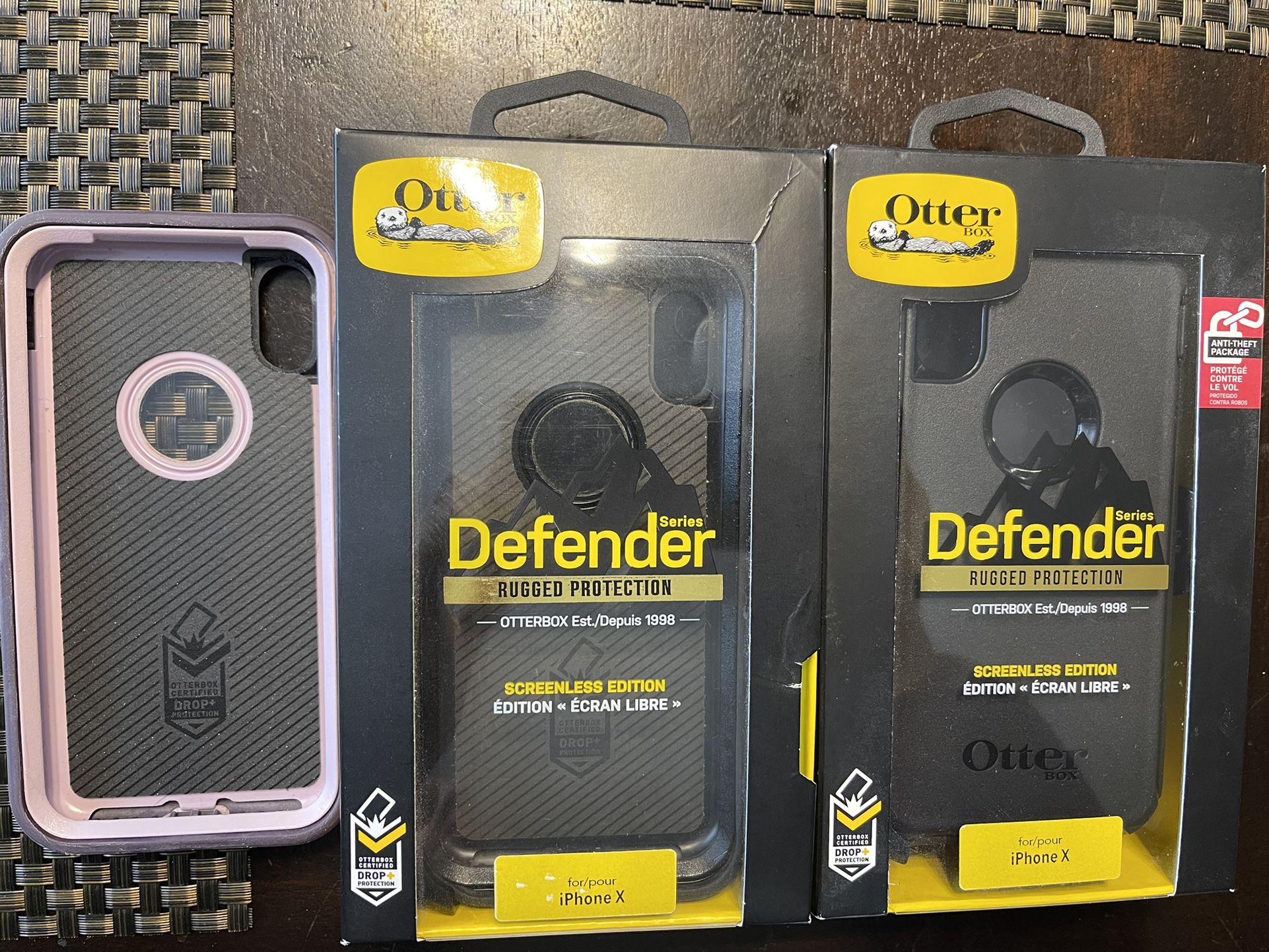 Otter box cases for iPhone X The one on the box it’s brand new, never opened it sells for $32 at Amazon…. Asking $15 The other black one it was used for about 2 months $10 The purple one it was used for 2 moths as well. Asking $10 Mpu at RR parking lot
