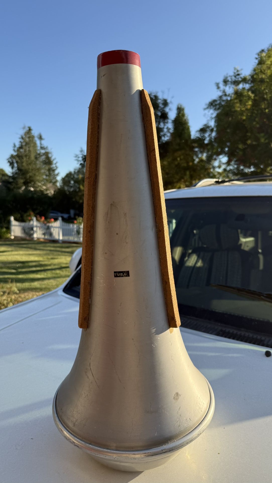 Aluminum mute for tuba. For reference; I used it in a 186 Mirafone. Great shape. Yes, Mirafone… not Miraphone. Hit me up