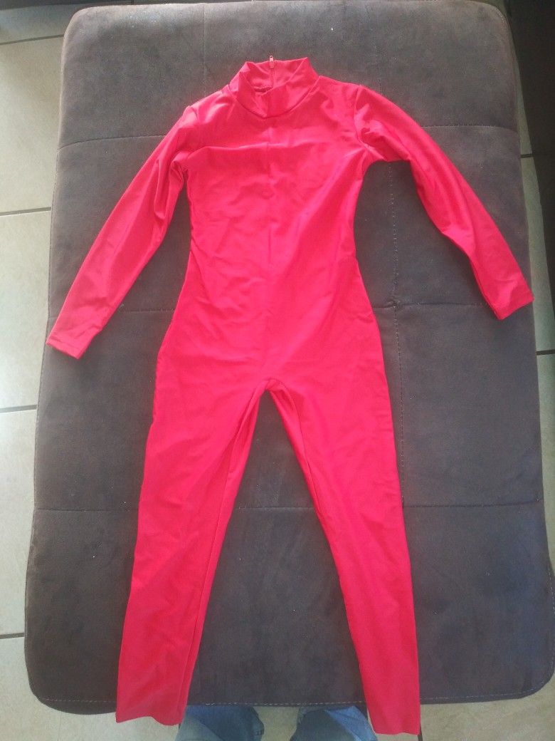 Childs small more like xs red body suite that I purchaded for my daughter but did not fit. Ran out of time to get a refund. Was going to use as Britney Spears outfit.