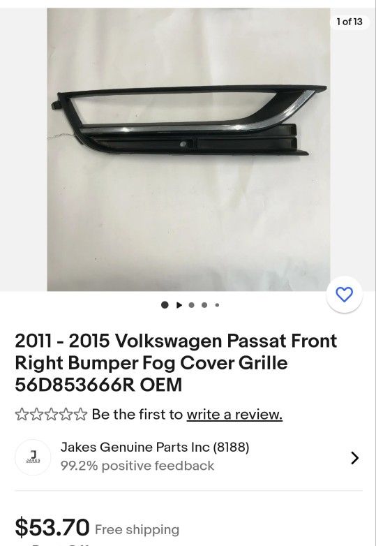 Bumper Fog Cover Grille ( Left and Right Cover) Volkswagen Passat