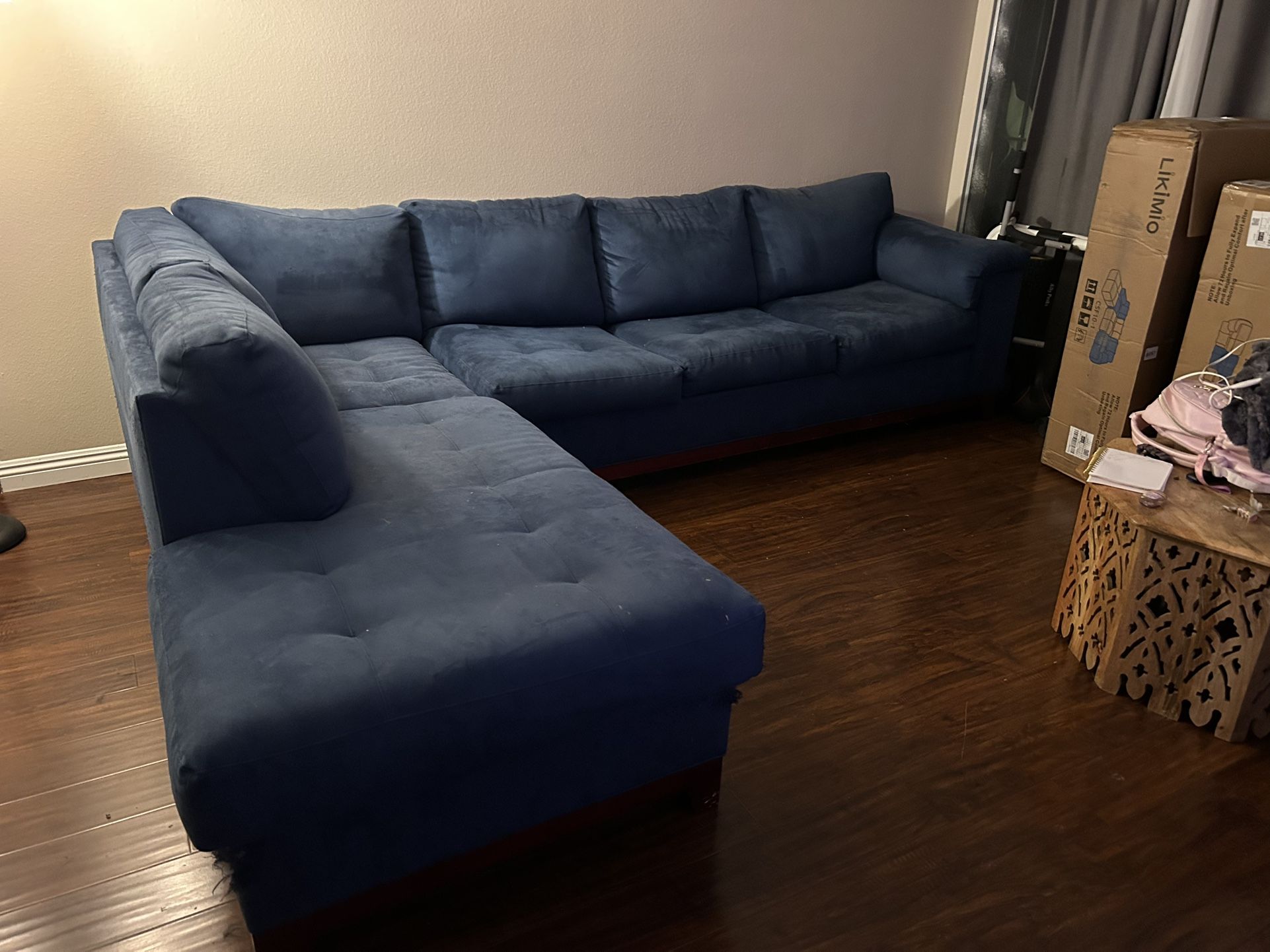 Large couch with fold out bed. Scratches from a cat, otherwise good condition