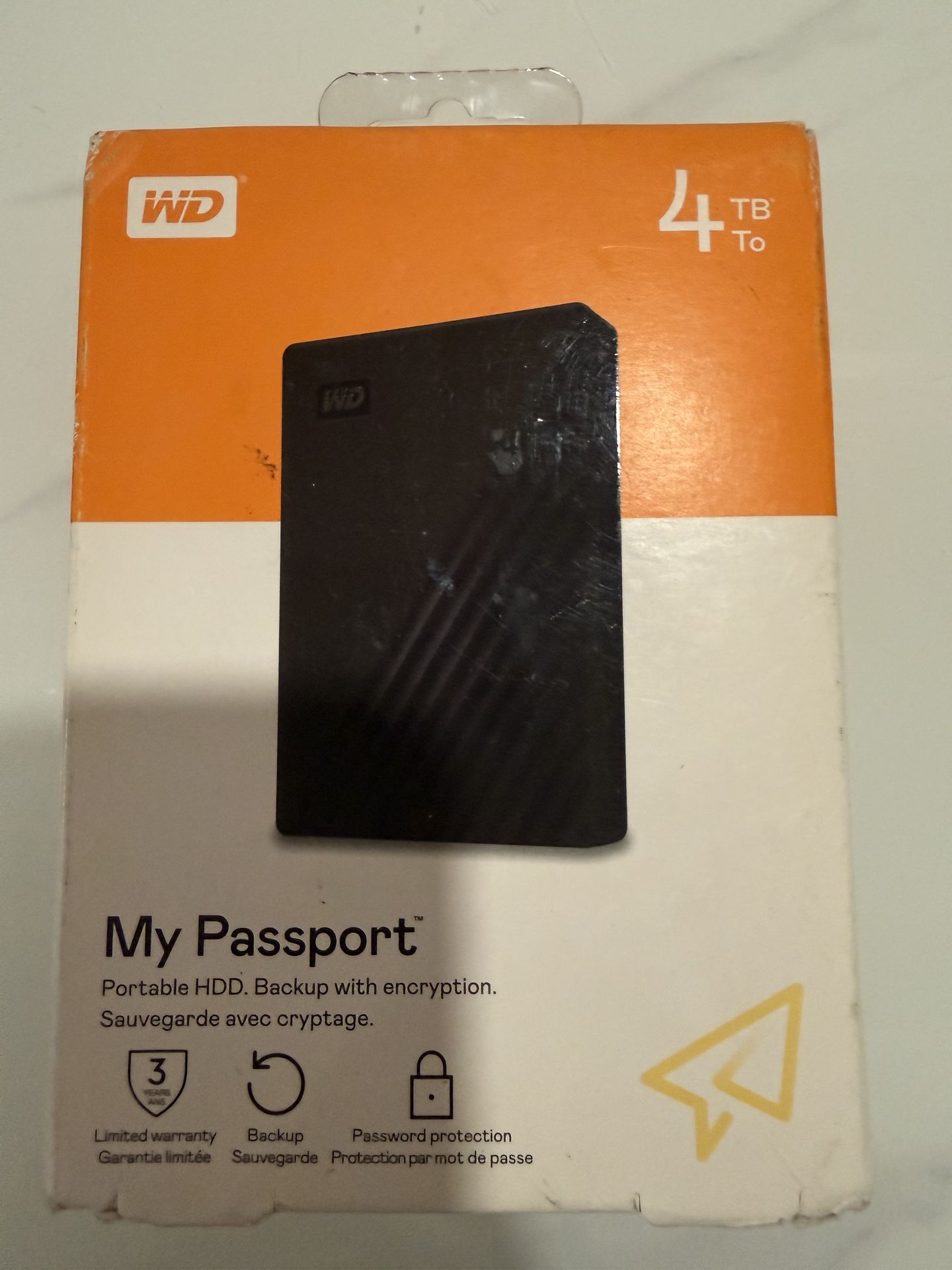 WD 4TB My Passport, Portable External Hard Drive, Black, backup software with defense against ransomware, and password protection, USB 3.1/USB 3.0 com