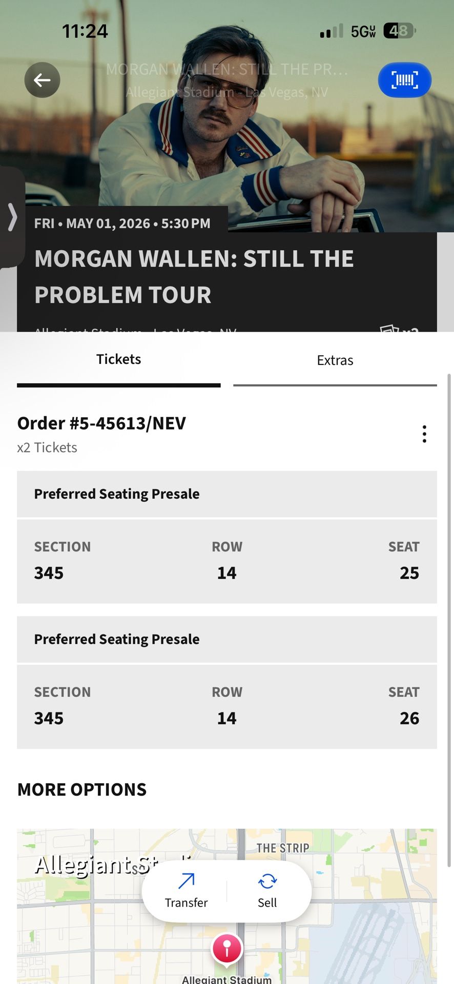 Have two tickets for Morgan Wallen in Vegas. Also booked a two night stay at the palms hotel in Vegas that I can change the name of the guest. 325 each ticket and 400 for hotel
