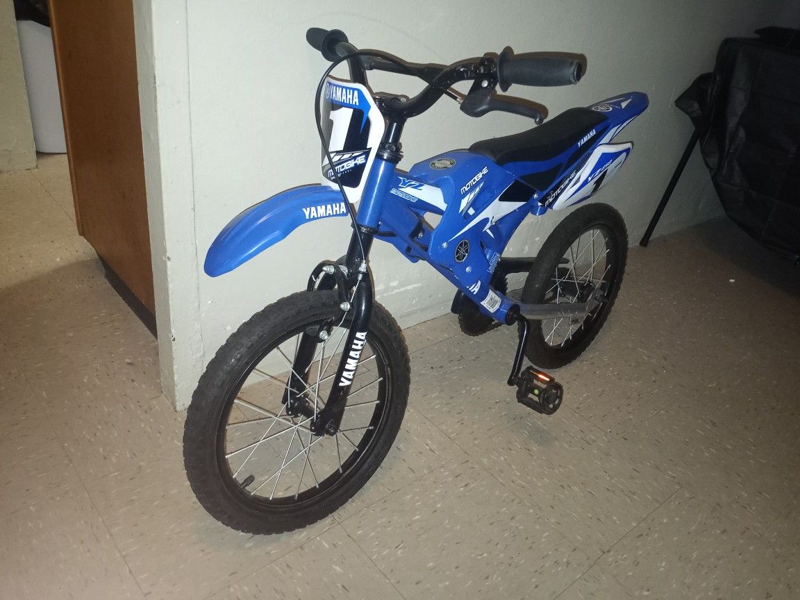 Royal blue and white Yamaha BMX children's dirt bike, with two wheels , good brakes and great steering for your young kid enjoyment.