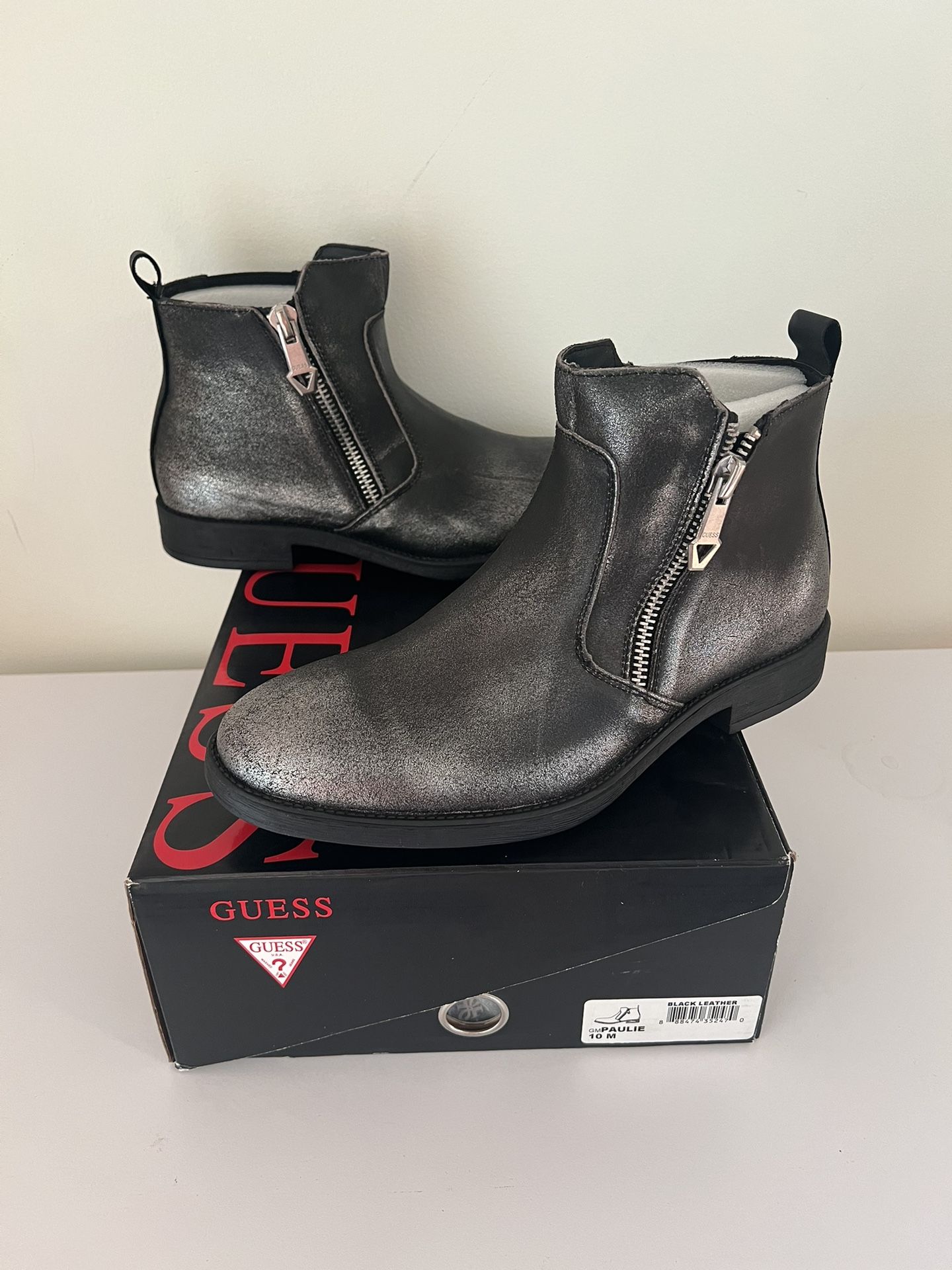 Guess Paulie Black Metallic Leather Boots Size 10 New
