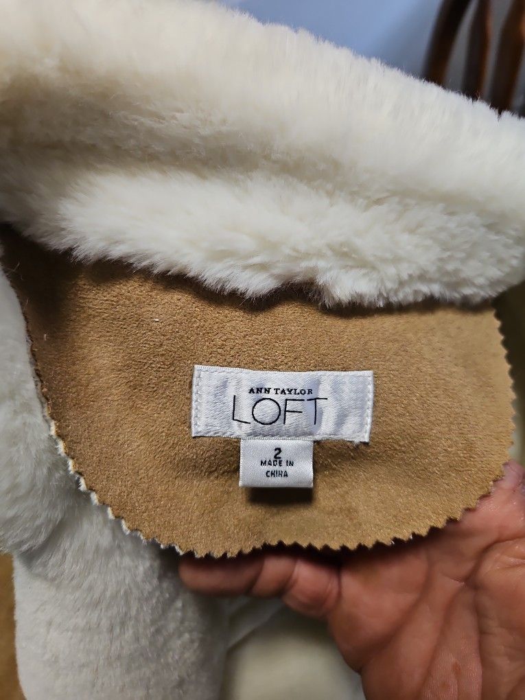 Women's tan with fur lining suede jacket from Ann Taylor's The Loft try small only worn twice