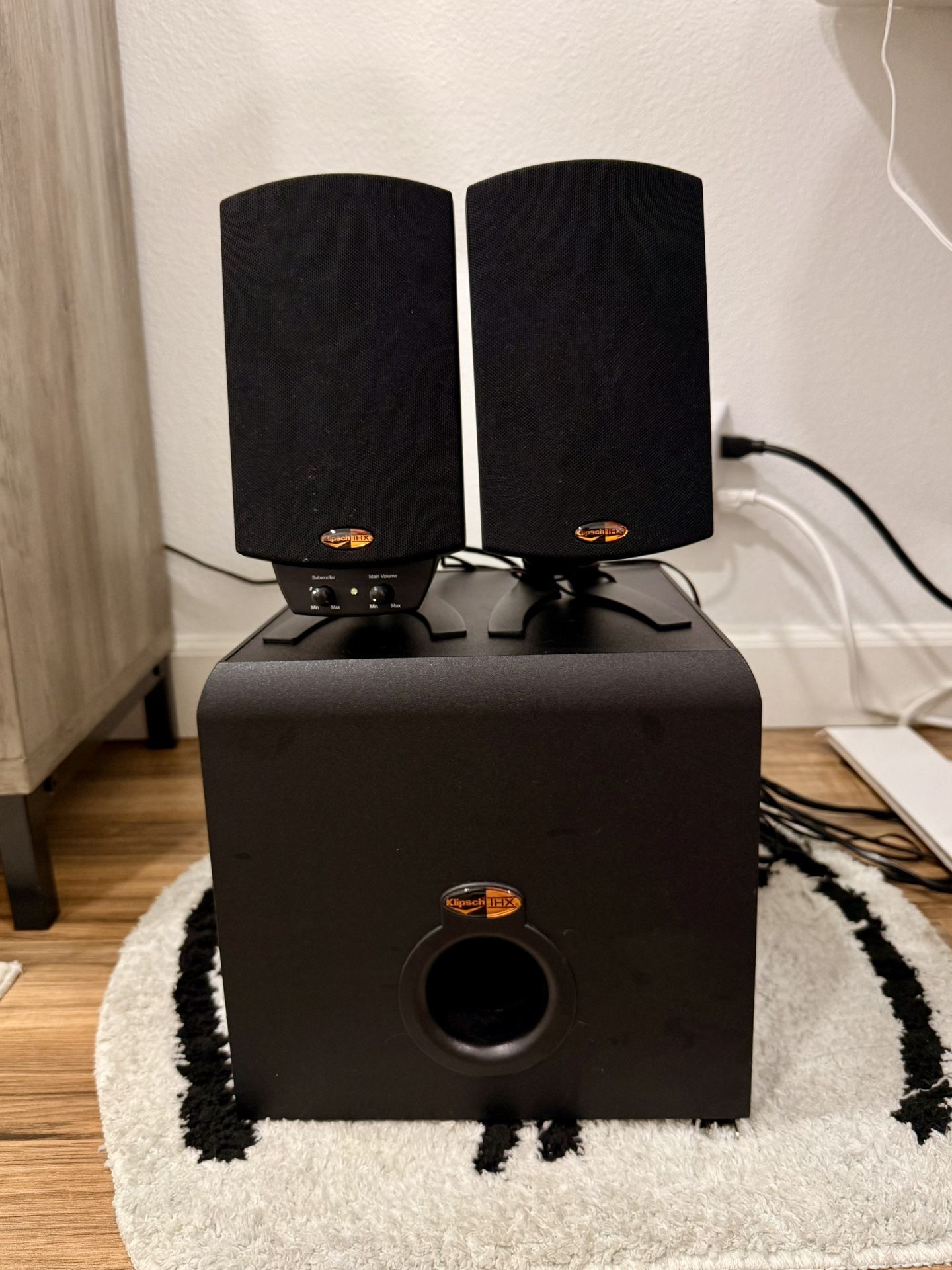Klipsch ProMedia 2.1 THX computer speakers. Will include aux cable for plugging into your phone or computer. Pick up in San Jose, Morgan Hill, or Palo Alto