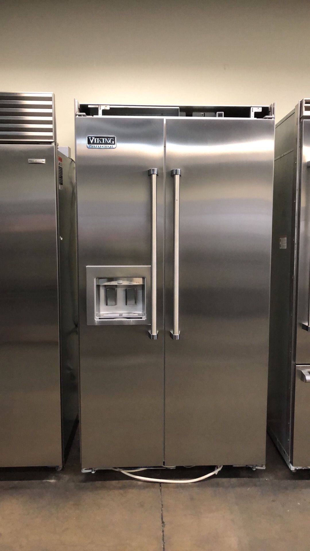 Viking 42” Wide Stainless Steel Side By Side Built In Refrigerator