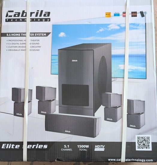 Cabrilla Technology Elite Series 5.1 1500W Home Theater Speaker System. New
