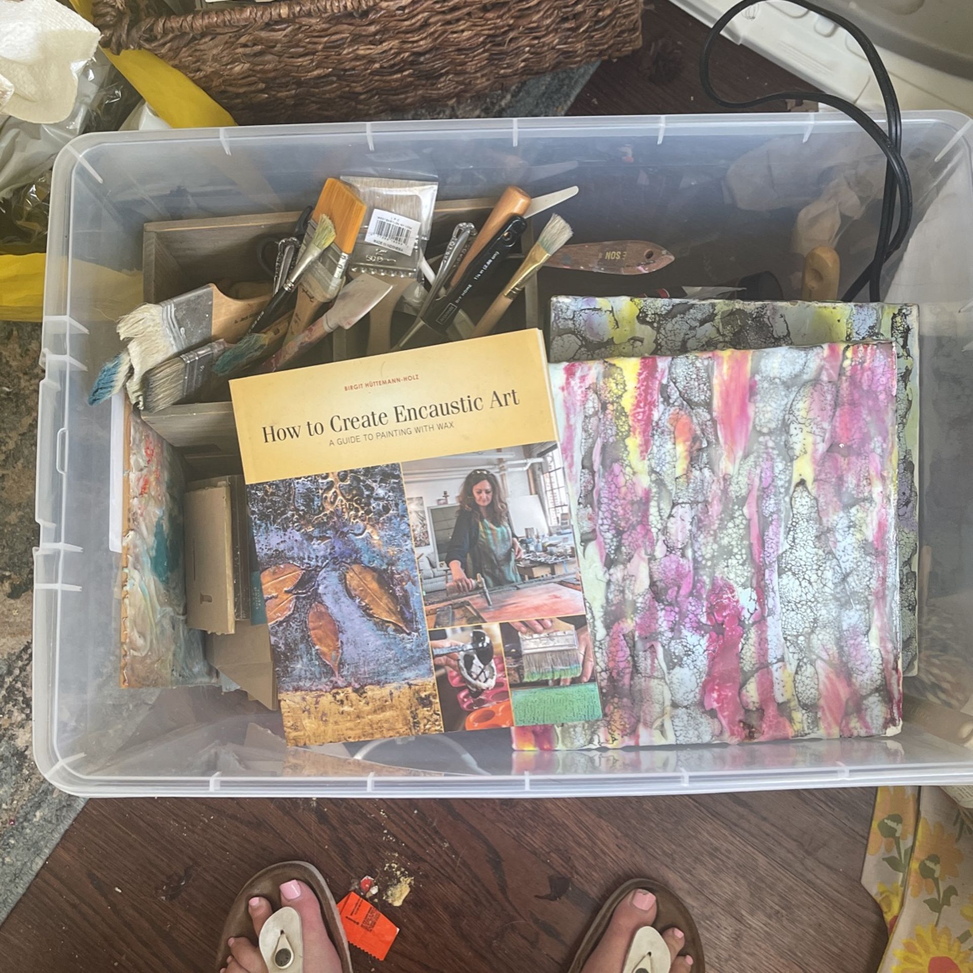 Fan for window, griddle, boards, wax, resin, tools,book, thermometer, new stylo encaustic art penetc… everything u need to set up an encaustic space and paint!!
