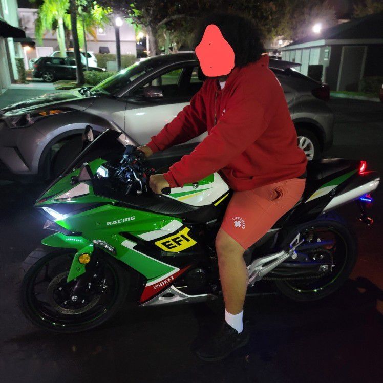 HHH Vitacci Titan 250 EFI Motorcycle 6 Speed Sport Street Bike with Oversized Front and Rear Brakes and Custom Alloy Rims - Color Sporty Black GREEN