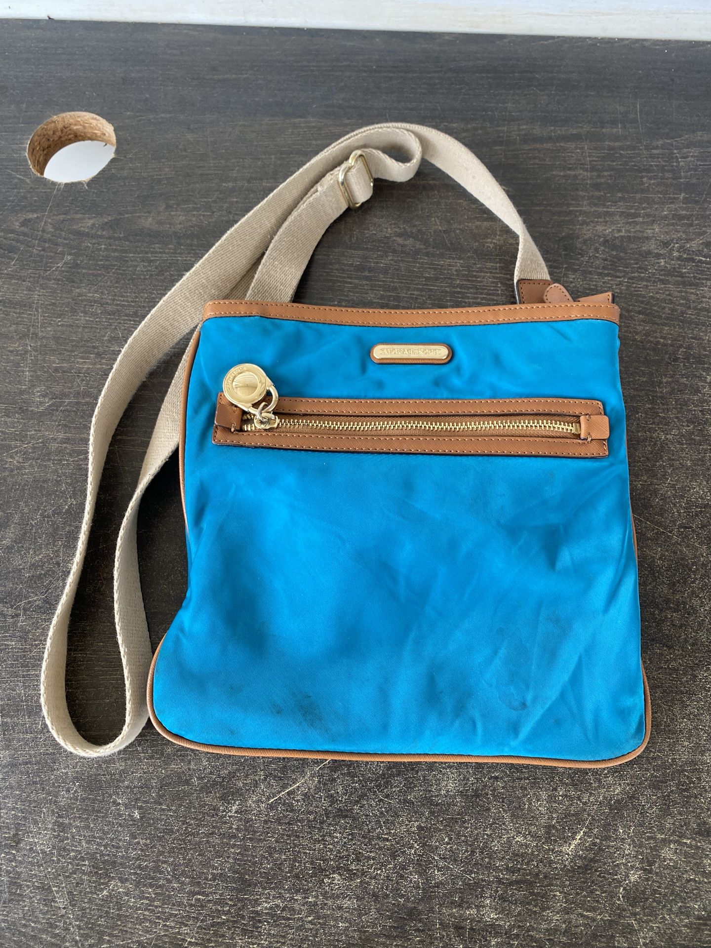MICHAEL KORS KEMPTON TEAL BLUE NYLON ZIP POCKET CROSS BODY HANDBAG PURSE TOTE