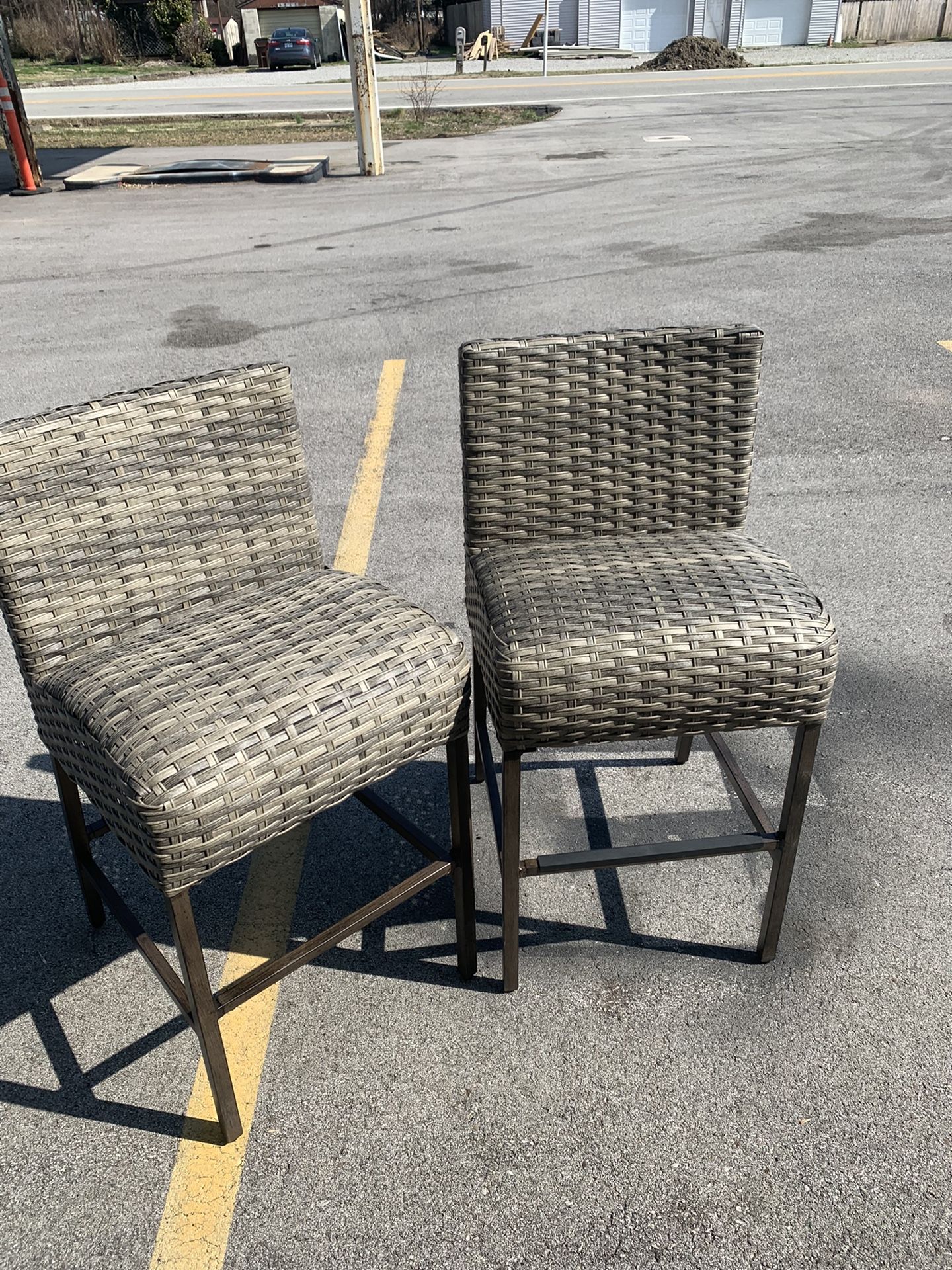 New Cosco smartwick wicker bar stools, set of 2. Assembled, no issues. Weather resistant polyurethane wicker with antimicrobial properties. Seat height: 29”