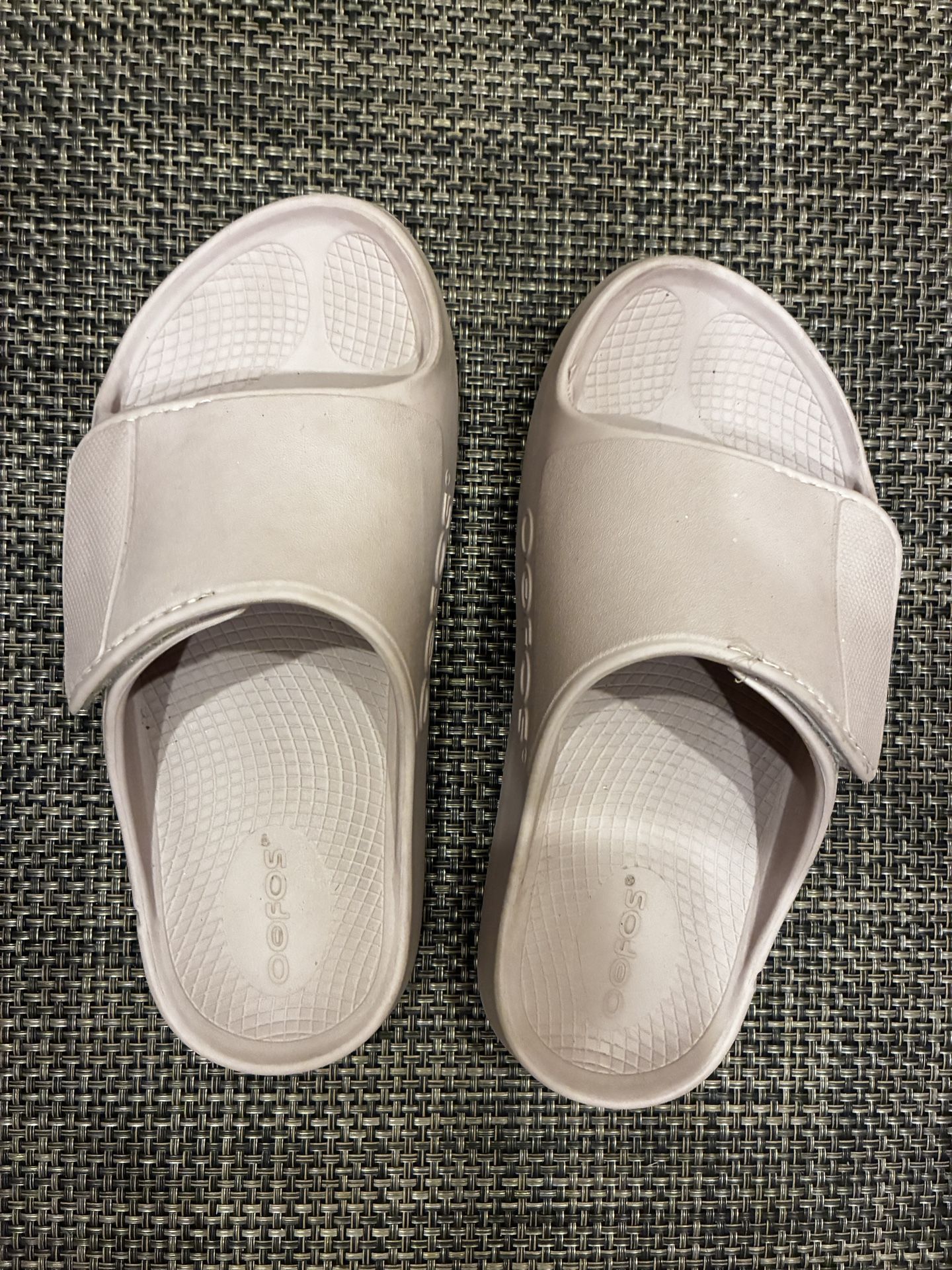 In great condition! Very comfortable. $79.95 new. Fit7-8 size. An evolution of the OOriginal, featuring an agile OOfoam™ strap for additional support and comfort. Sport Flex: A contemporary spin on the classic slide, with a sleek adjustable upper strap for a more optimal all-around fit.