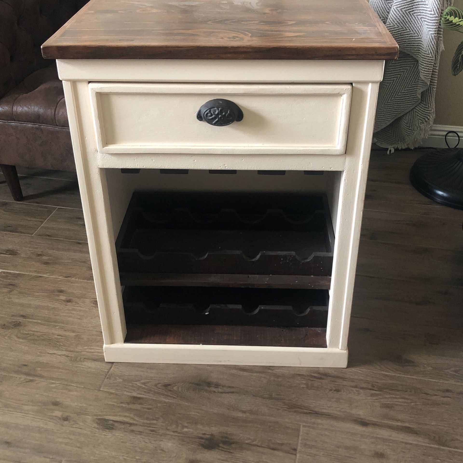 Wine rack was purchased at a craft fair. Has some wear
