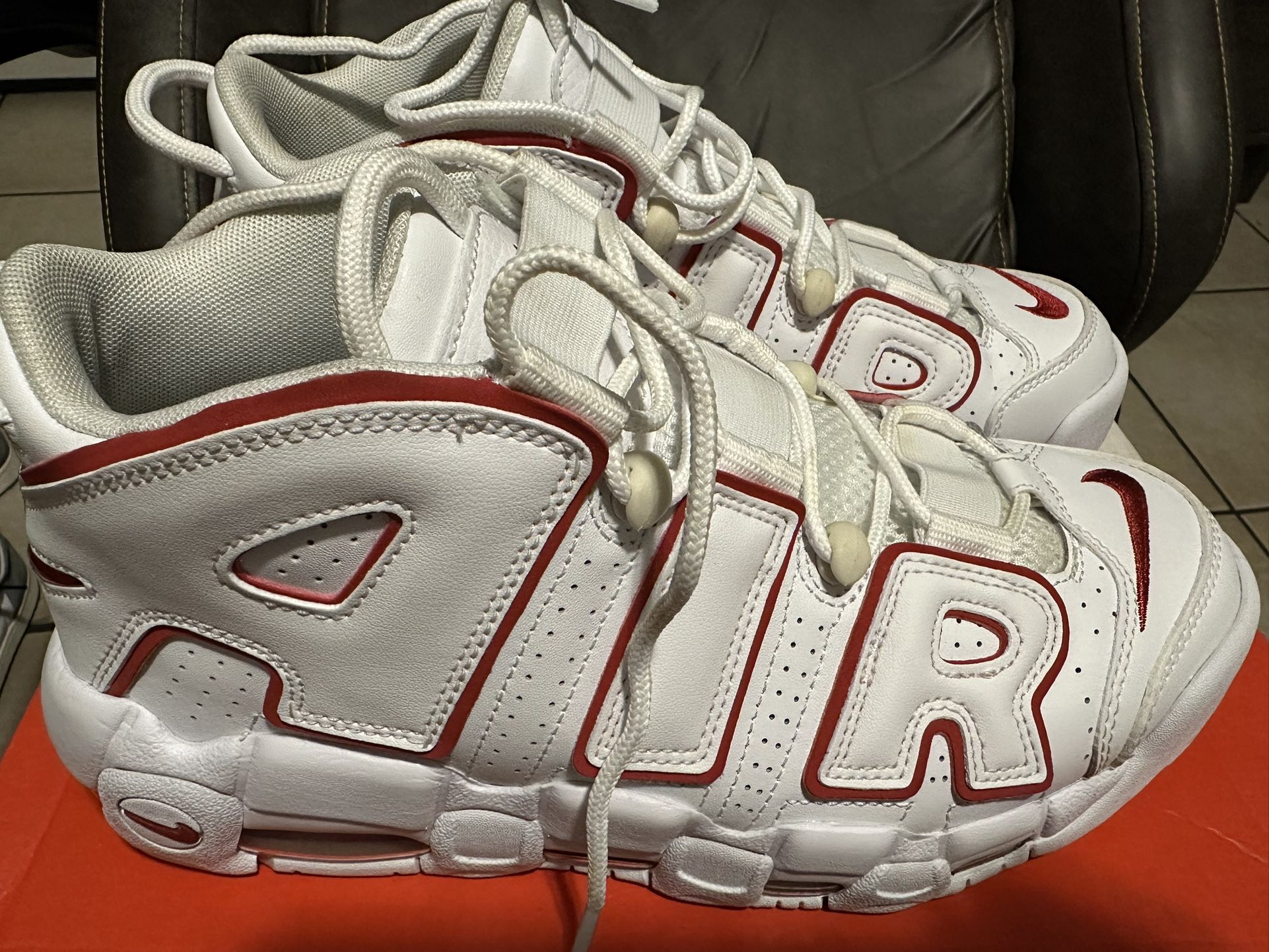 Uptempo white with red outline size 8.5 worn lightly og all good condition