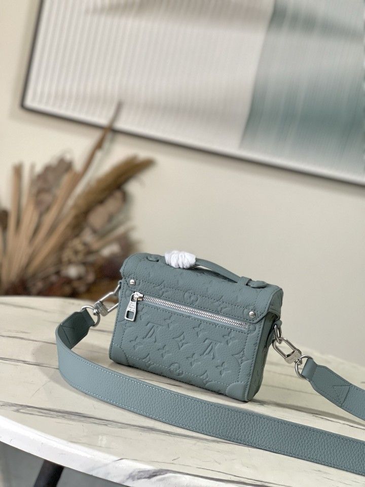 Green This Soul Trunk handbag is crafted from soft Monogram embossed Taurillon cowhide, embodying the brand's traditional hard case design. It features reinforced corners, leather details, and a detachable and adjustable shoulder strap adorned with Monogram patterns. The interior is lined with cotton fabric, completing the overall look. Size: 19x15x7cm Crossbody bag