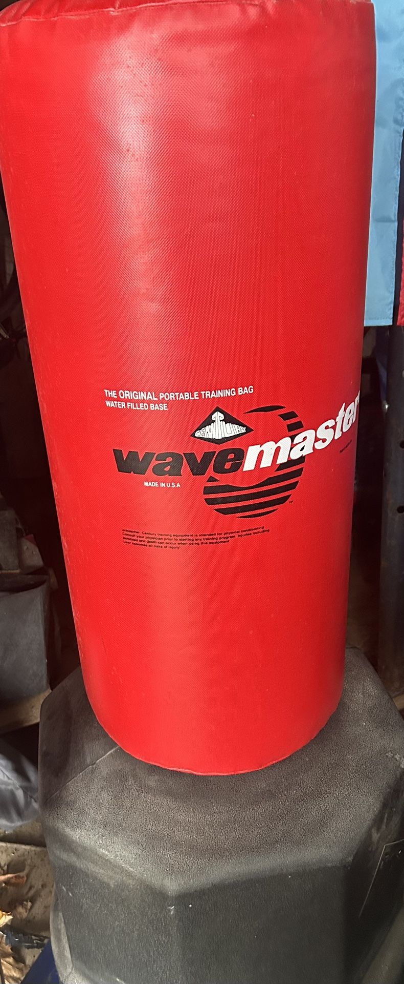 Century Original Wavemaster Freestanding Punching Bag -Portable training bag designed for developing kicks, punches, and strikes. -Base can be filled with water or sand, weighing up to 270 lbs when filled, for stability. -Seven height adjustments from 47 inches to 68 inches. -Constructed of high-density foam and covered in durable vinyl. -The rounded base allows it to be easily relocated without permanent fixtures. -It is suitable for various martial arts training, including boxing, kickboxing, and MMA. Great condition.
