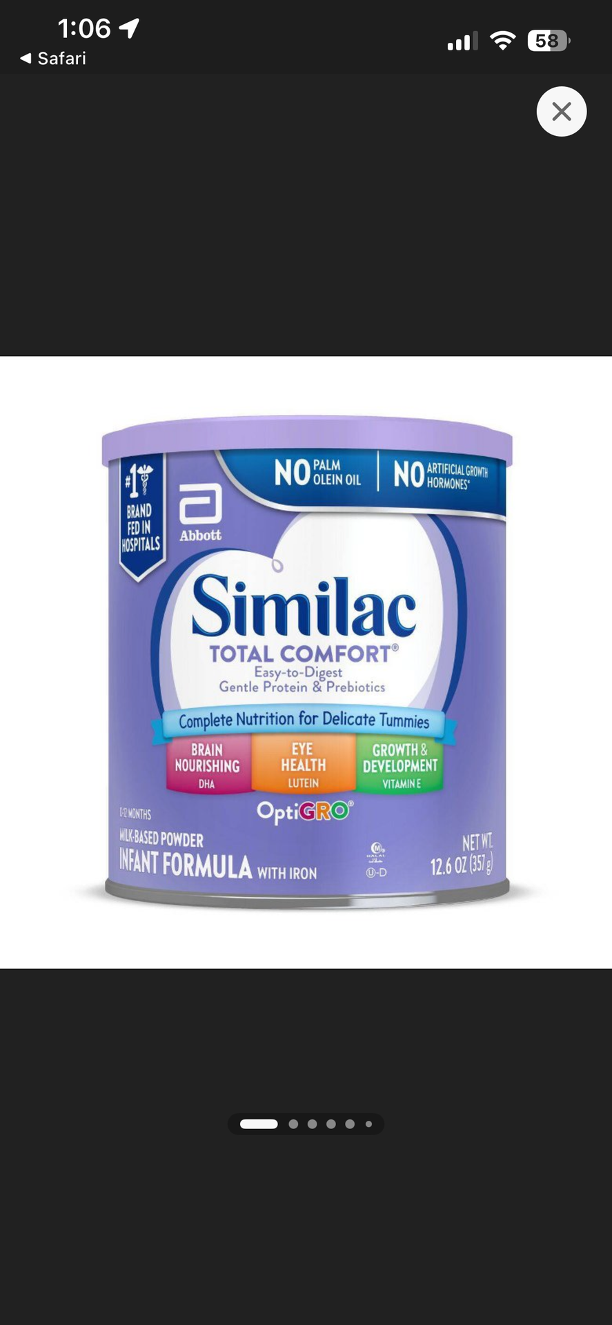4 cans of Similac total comfort. 12.6 oz All 4 for $60
