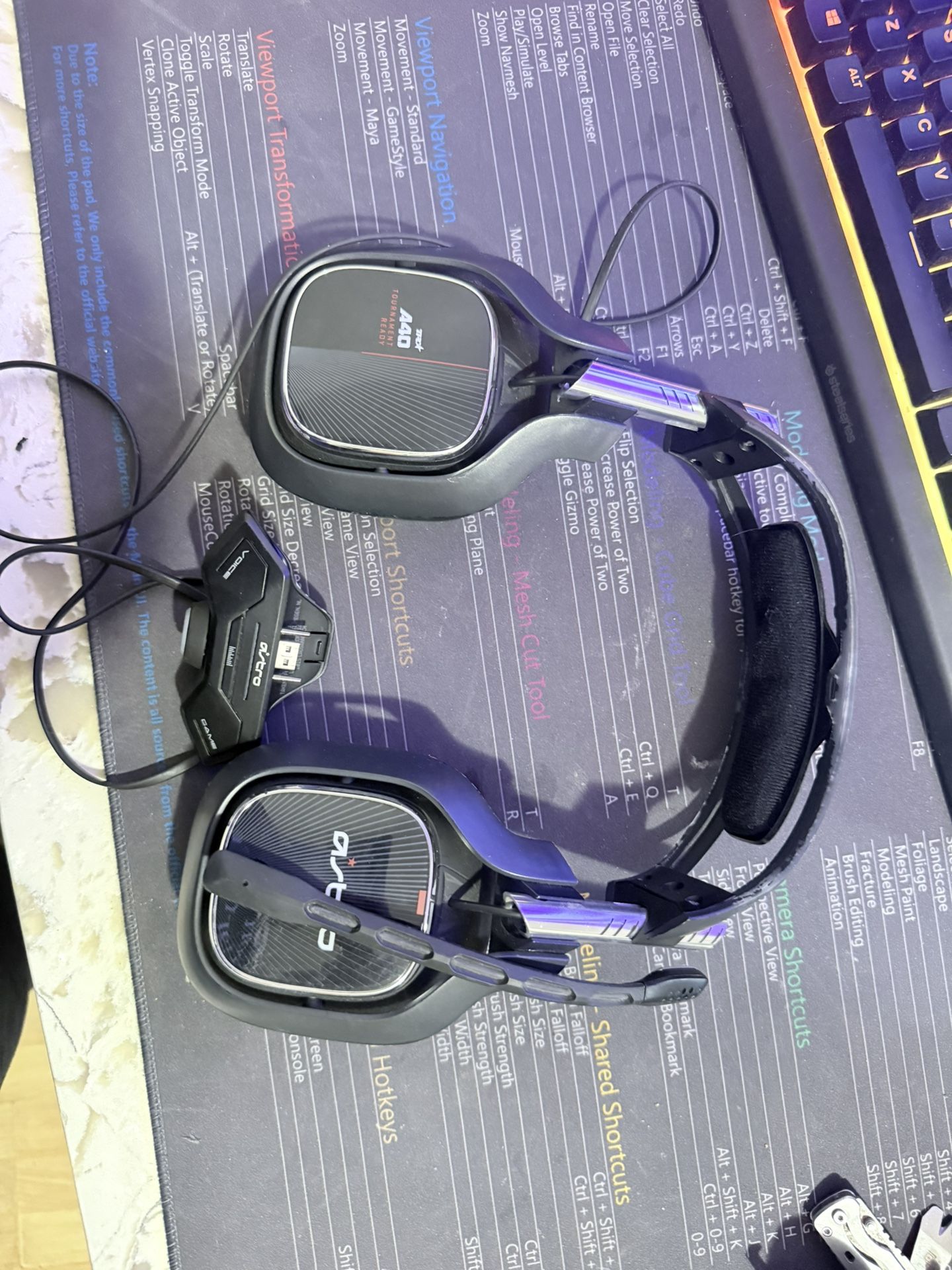 Gaming headset, astro a40s. Has mic and M80 adapter for the xbox controllers. No aux cable. Works fine, Just some minor usage weardown