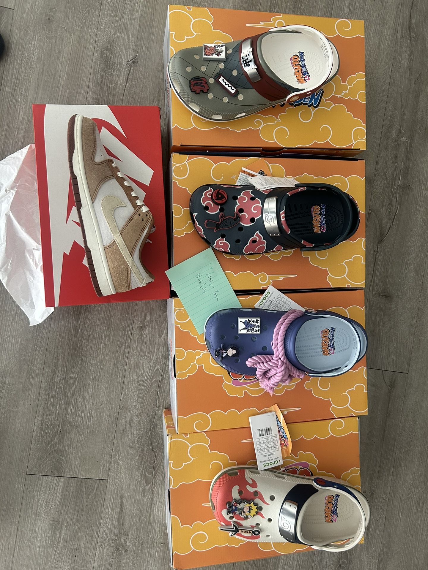 Selling a set of naruto crocs. All croc 80 each or buy all 4 for $300. All new with receipts Medium curry dunks brand new size 8.5 $100 Take all for $400
