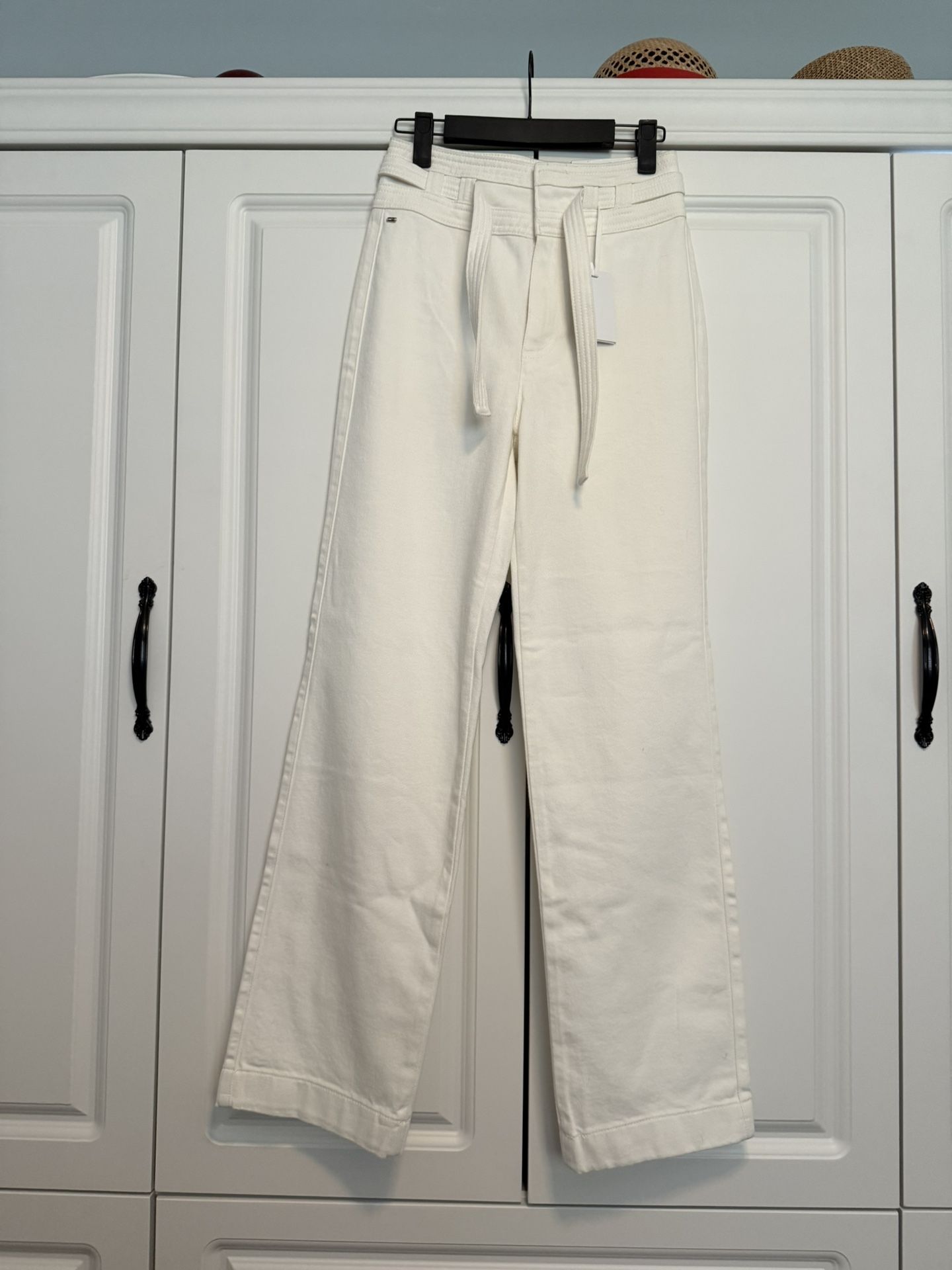 Wide leg cream pants with tie waist belt. Size 25Wx30L