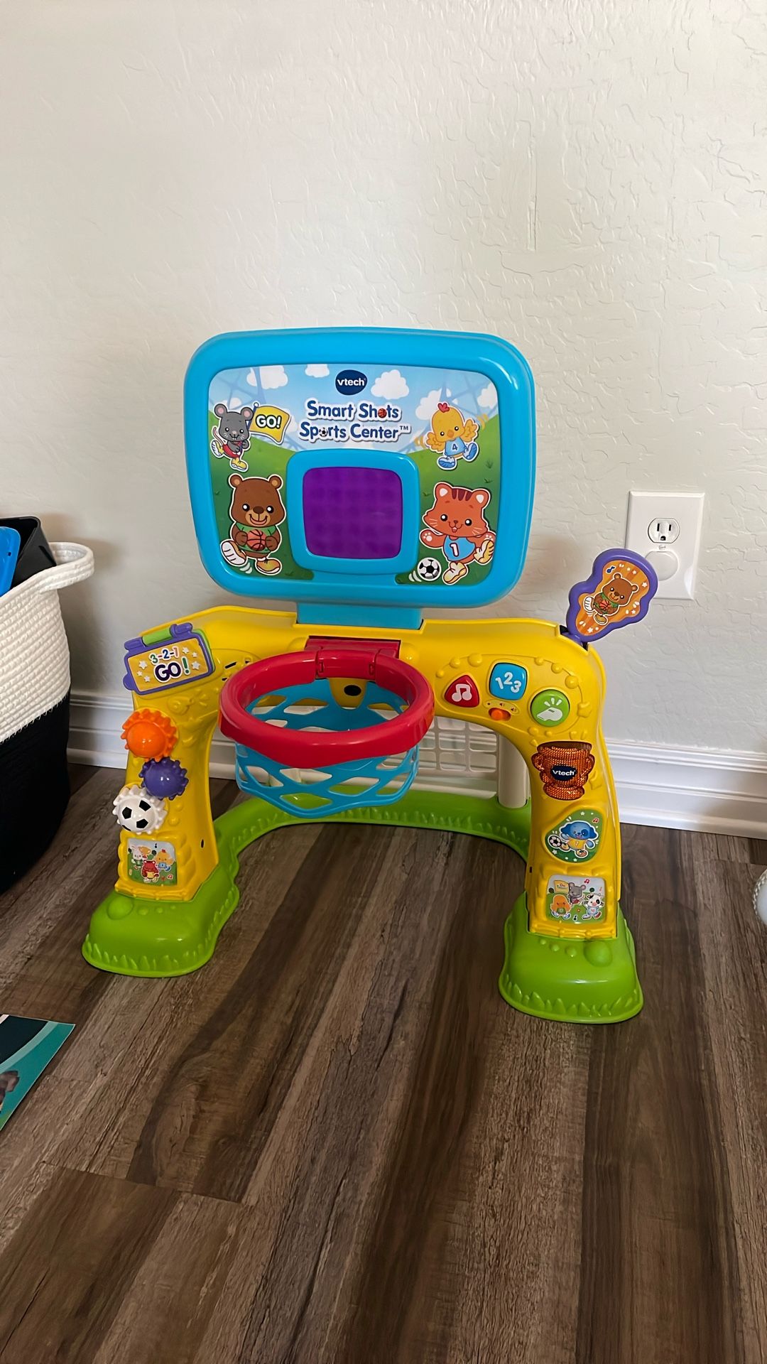 V tech kids soccer and basketball toy Works perfectly Also comes with little soccer ball and little basketball