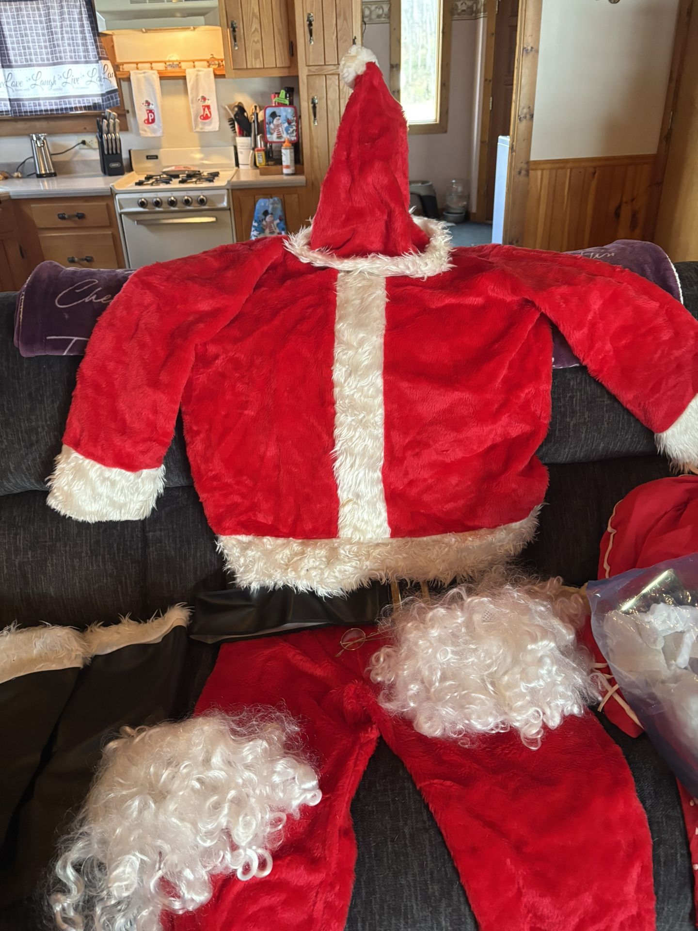 Complete Santa and Mrs clause suit. Comes with Santa toy bag has extra gloves extra glasses and extra belt. Everything is in great shape. Still has allot of life left in it. Just don’t have the time to do this anymore. Asking $150 OBO