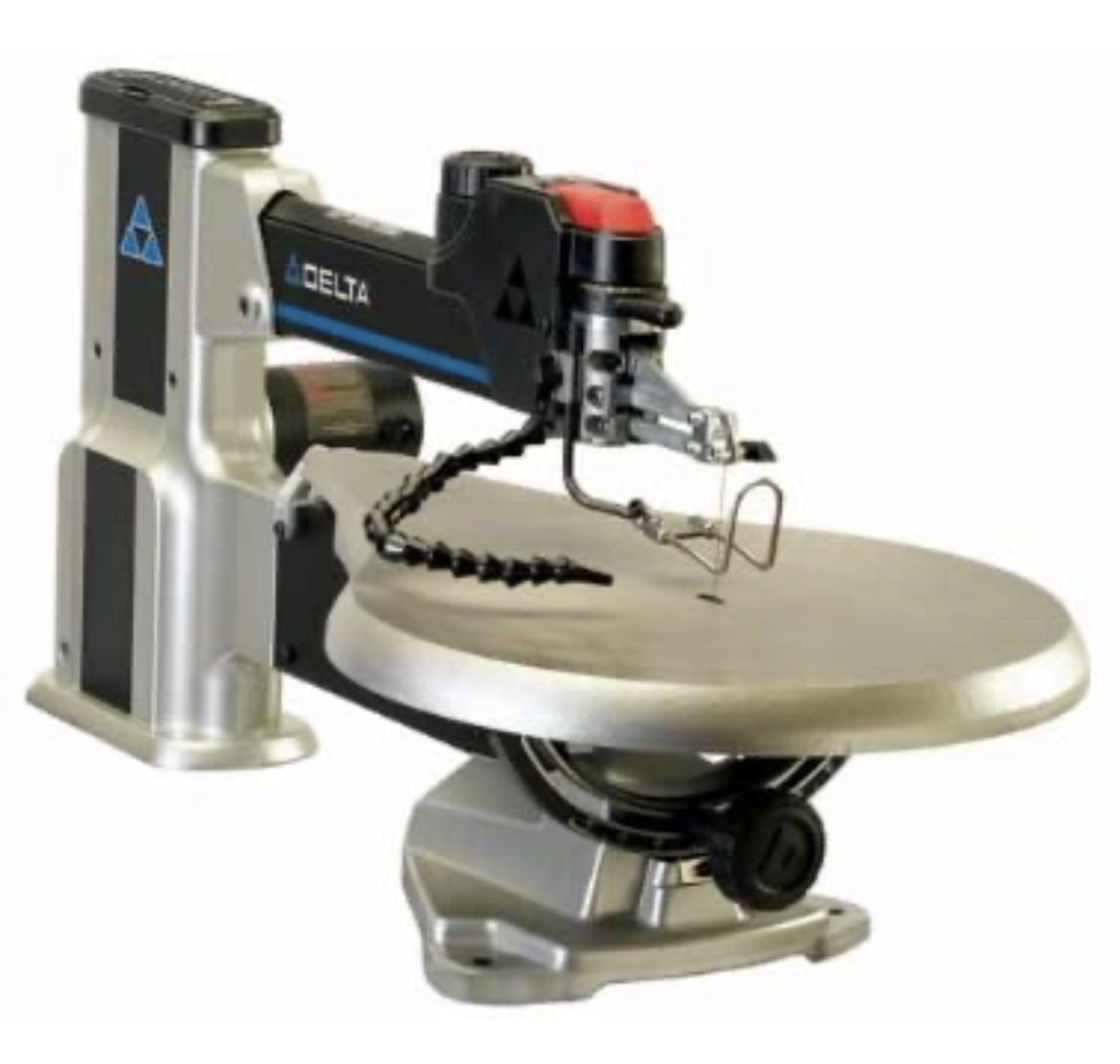 Brand New Delta Scroll Saw. Electronic variable speed can be adjusted from 400-1,750 SPM for a wide array of cutting applications Dual parallel link arm design reduces vibration reducing over and under cutting improving accuracy and quality Upper arm lifts and locks in the raised position during blade changes or while adjusting blade position for fret work Tool-free blade clamp allows for quick, easy blade changes in seconds. Bevels 0° - 45° left and right. Motor: 1.3 Amp On/Off switch, electronic variable speed dial, flexible dust blower and blade-tensioning lever are all conveniently located up front on the arm for easy accessibility On-tool blade storage area provides neat, organized protection for scroll saw blades, includes 2 straight blades