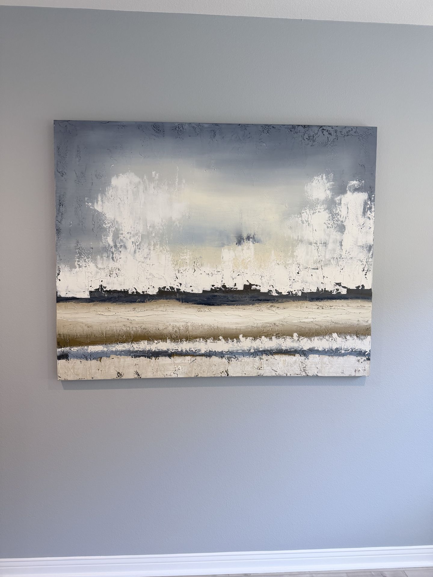Like new. Easy to hang. So beautiful! Large canvas wall painting by Sarah Brook. Called Middle of nowhere”. $75 cash. Priced to sell. Pick up in San Marcos. Serious buyers only please. Dimensions: H: 4 feet W: 5 feet