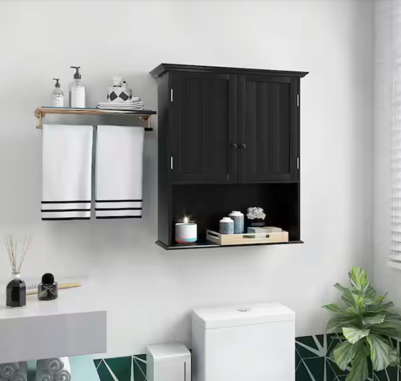 23.5 in. W x 8 in. D x 28 in. H Black Bathroom Storage Wall Cabinet Wooden Medicine Cabinet Storage Organizer