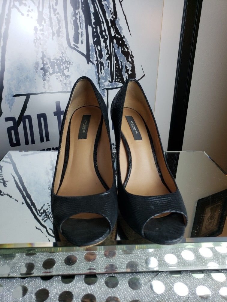Ann Taylor Size 9.5 Black Peep Toe Heels