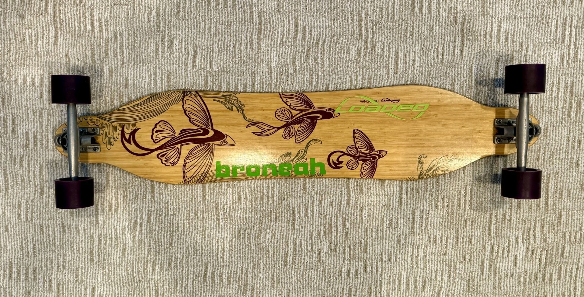 This longboard is lightly used with new bearings. Easy to ride and a great carver.
