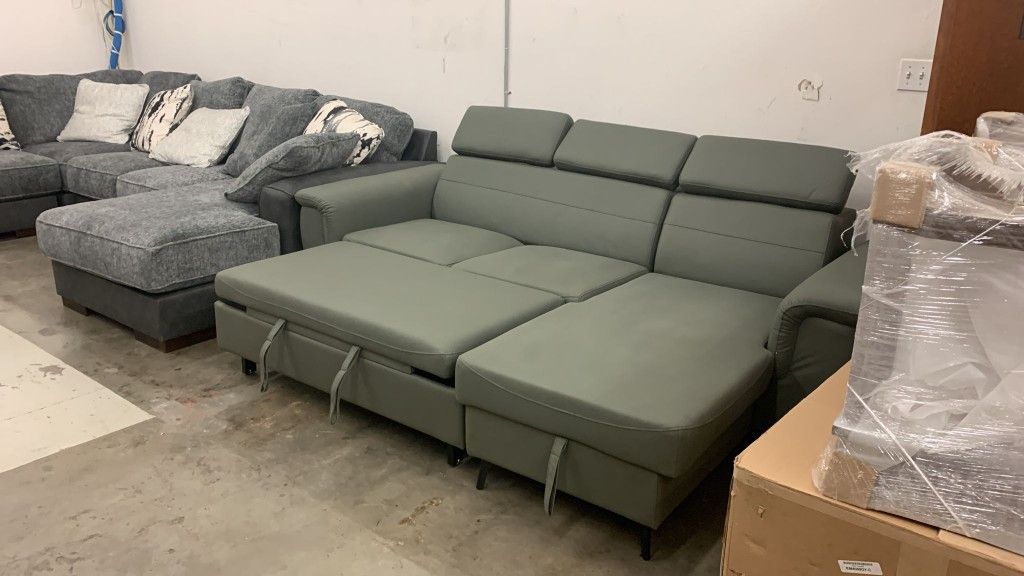 Capish (Beige,Blue,Gray) 2-Piece Reversible Sectional with Pull-out Bed and Hidden Storage📌with interest free payment options