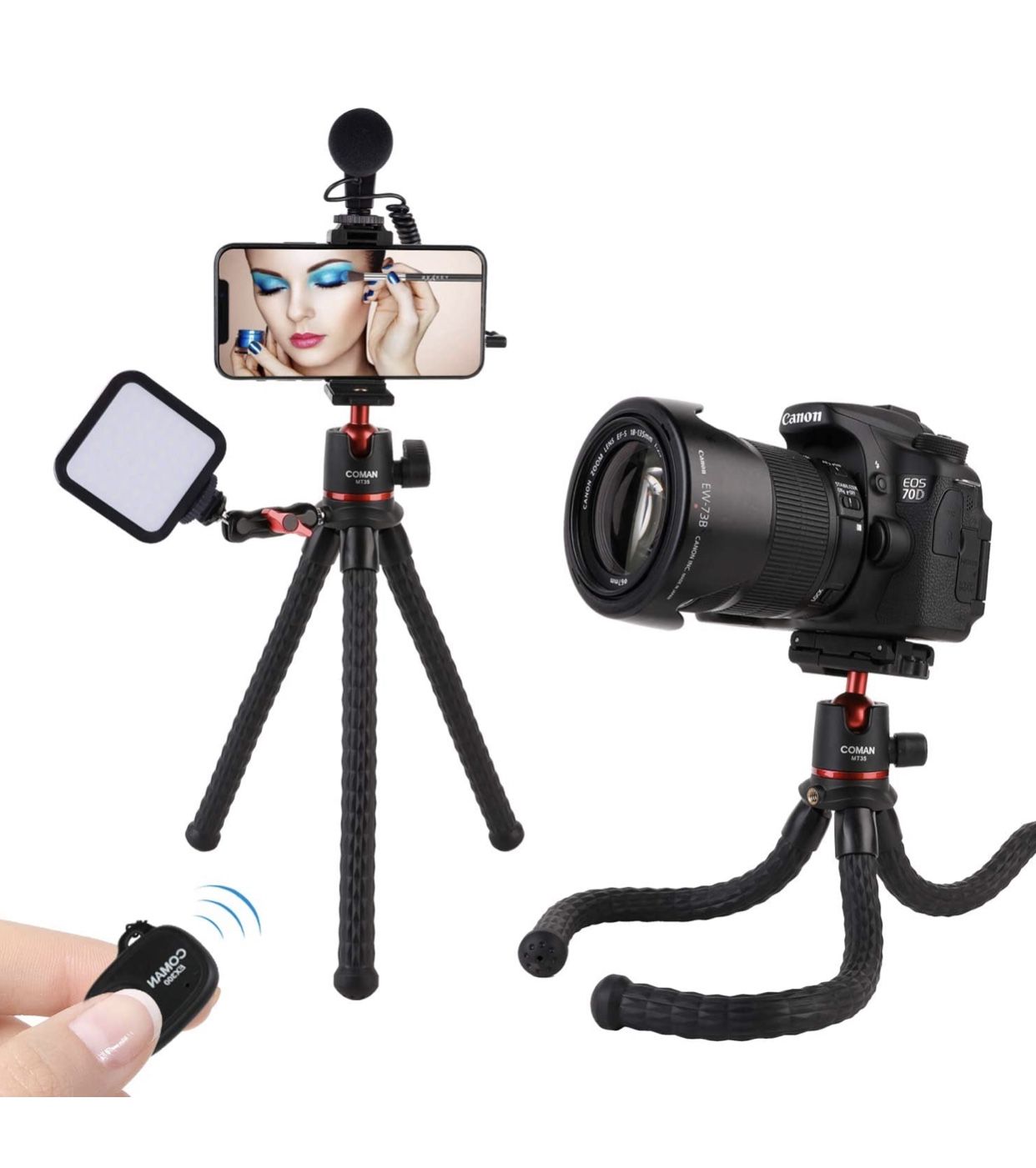 Tripod for iPhone, COMAN Flexible Camera Tripod, Hidden Phone Tripod Mount with Cold Shoe, Waterproof Tripod Stand for GoPro, Portable Travel Tripod w