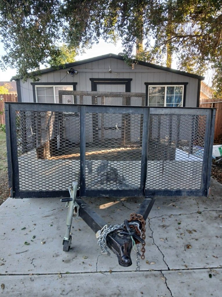 Utility trailer double axle heavy duty measurements are 6x10x4 6 ft wide 10 ft long 4 ft side walls side walls are made from metal mesh great for keeping trash and debris from falling out when transporting title in hand