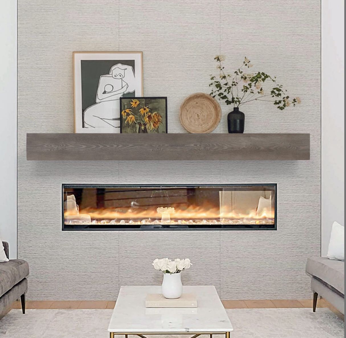 Fireplace Mantel | 60" W Wood Floating Shelves | Handcrafted Hollow Distressed Beam | Wall Mounted Wooden Display Shelfing | With Invisible Heavy Duty Hanging Wood Bracket | 60W X 6H X 8D, Ash Gray 60"W X 6"H X 8"D Ash Gray