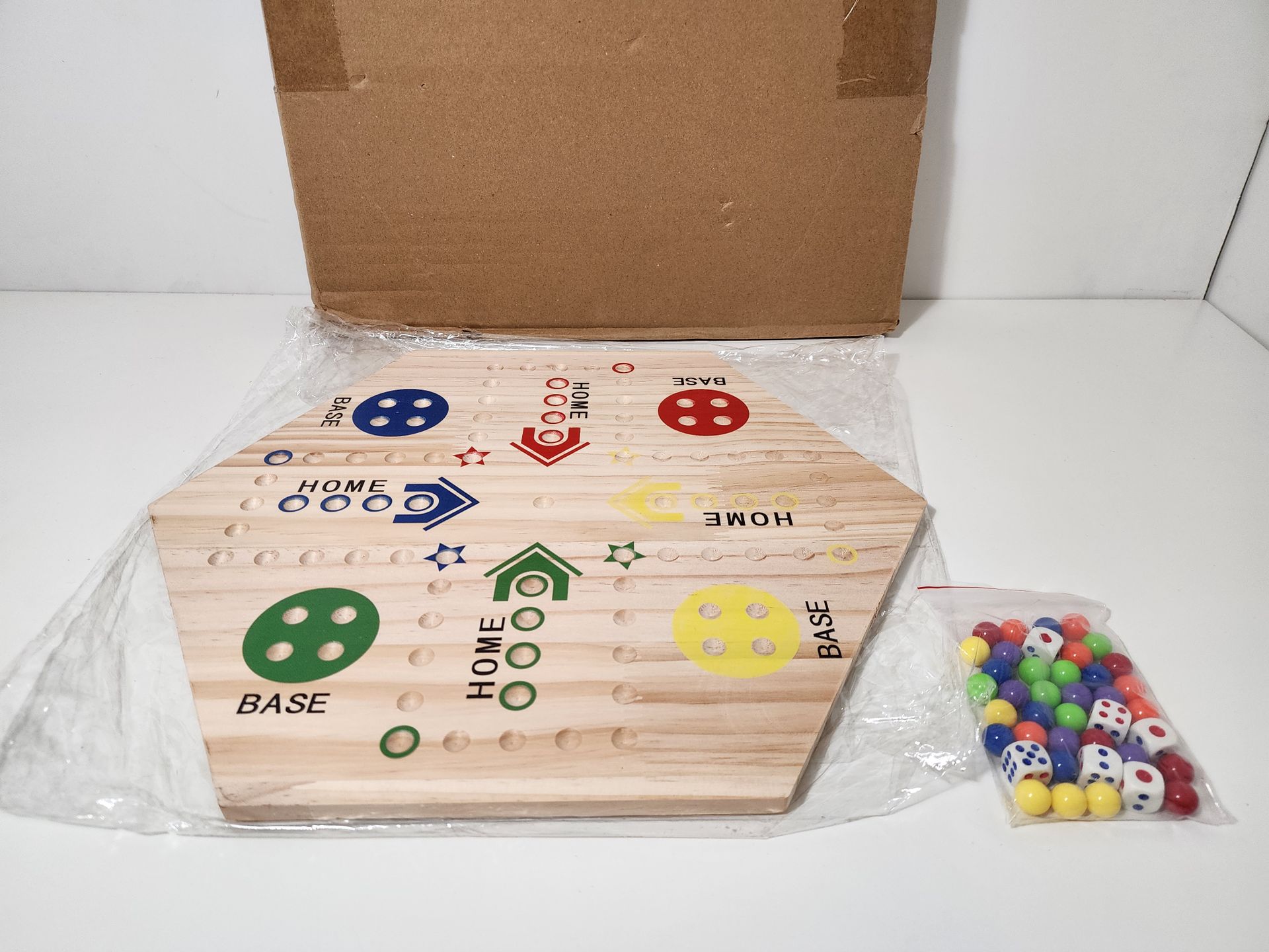 Aggravation Board Game Original Marble Game Double Sided Painted Game Board 4 and 6 Player Fast Track Board Game Wooden Family Board Games for Adults Kids and Family Game Night $50 Aggravation board game, a race game where players move marbles around the board from base to home. Product details Description: Aggravation Game Board Set, Marble Game, Aggravation Board Game, Board Games, Wooden Board Games, Aggravation Board Game Original Marble Game Double Sided Painted Game Board 4 and 6 Player Fast Track Board Game Wooden Family Board Games for Adults Kids and Family Game Night Features: Quality Crafted by Mennonite Craftsmen in Holmes County, Ohio. Solid Red Oak Hardwood 16" Wide Hexagon Board. Double Sided - Plays up to 4 players on one side and up to 6 on the other. Complete with Game Board, Marbles, Dice, and Instructions. Beautifully Hand-Painted Holes for Easy Play. Specfication: Product material: wood Product weight: net weight 450g with packaging 530g Product Specifications: Double Sided Product style: flying chess Product color: wood color Product size: 38cm*33cm thickness 1.9cm • LONG-LASTING GAME AND SAFETY – Our Aggravation Game Board is made of durable hardwood and the wooden aggravation board game has hand-painted holes for easy navigation during play. The included black velvet bag is to store your dice and marbles safely when not in use. • THE BEST AGGRAVATION GAME – Marble Board Game Set comes with a uniquely designed DOUBLE SIDED HARDWOOD suitable for 4 or 6 players, 6 Colors 30 marbles (5 each of 6 colors) 6 die and full instructions. Read our included INSTRUCTION MANUAL to not miss out on any of the rules while playing. • EASIER TO NAVIGATE AND PLAY – Our Wahoo Game Board with 4 players or 6 players, is for each player to take their marbles from BASE to HOME position before the opponents. The aggravation board comes with a painted base and has COLOR MATCHED MARBLES to help you keep track of your pieces throughout the game which can be difficult in other NOT PAINTED boards, especially with 4 or 6 players. • STURDY AND WELL-MADE - Constructed from strong Pinewood, this beautifully designed old-fashioned tabletop activity is a long-lasting game that the whole family will enjoy playing for many years to come! It’s an attractive addition to any game room! Recreate Old-Fashioned Family Fun with our Deluxe Aggravation Game! • THE BEST GIFT FOR FAMILY – Aggravation board is double-sided painted, can accommodate 4 PLAYER, 6 PLAYER, 2 TEAM, or 3 TEAM games, the Marbles Aggravation game is great to "aggravate" your friends or family members. This classic board game also is a great educational activity to introduce children to games of strategy and critical thinking. Our aggravation marble game also is an excellent gift for birthdays, parties, weddings, anniversaries, Girlfriend, Boyfriend, Thanksgiving, etc